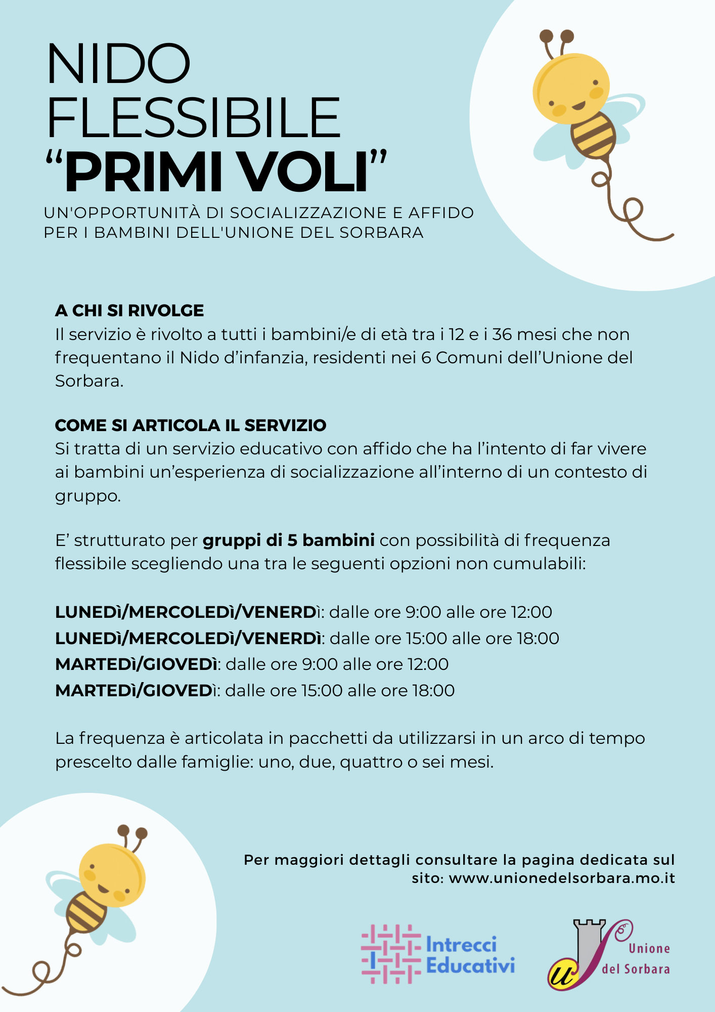 RIVOLTO A: per bambini da 12 a 36 mesi che non frequentano il nido d’infanzia, residenti nei 6 Comuni dell’Unione del Sorbara.
